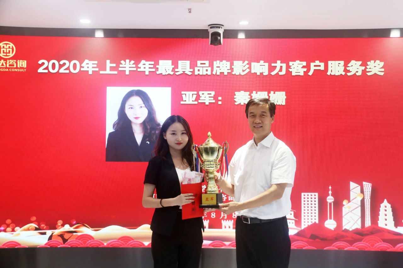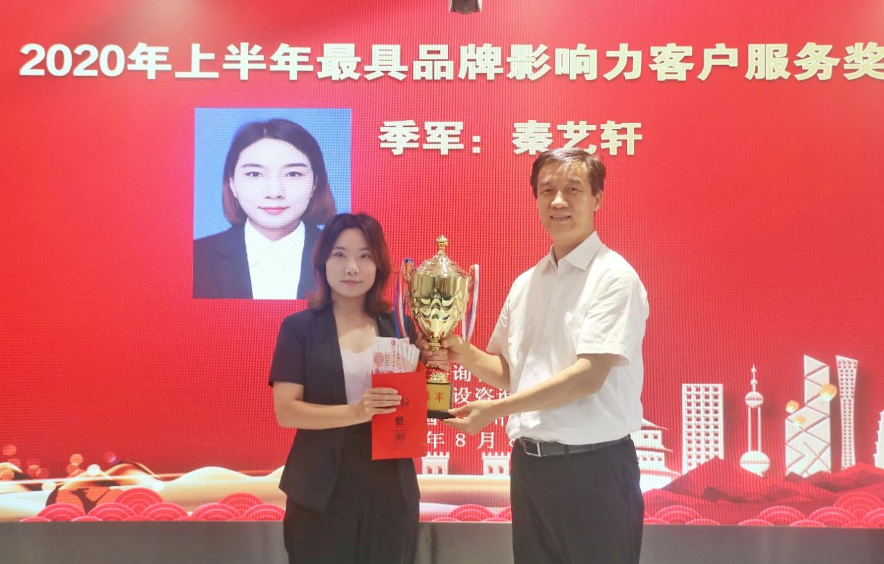 董事長(zhǎng)楊明宇為在2020年上半年客戶(hù)服務(wù)工作中表現(xiàn)突出的先進(jìn)個(gè)人頒發(fā)獎(jiǎng)杯和獎(jiǎng)金。