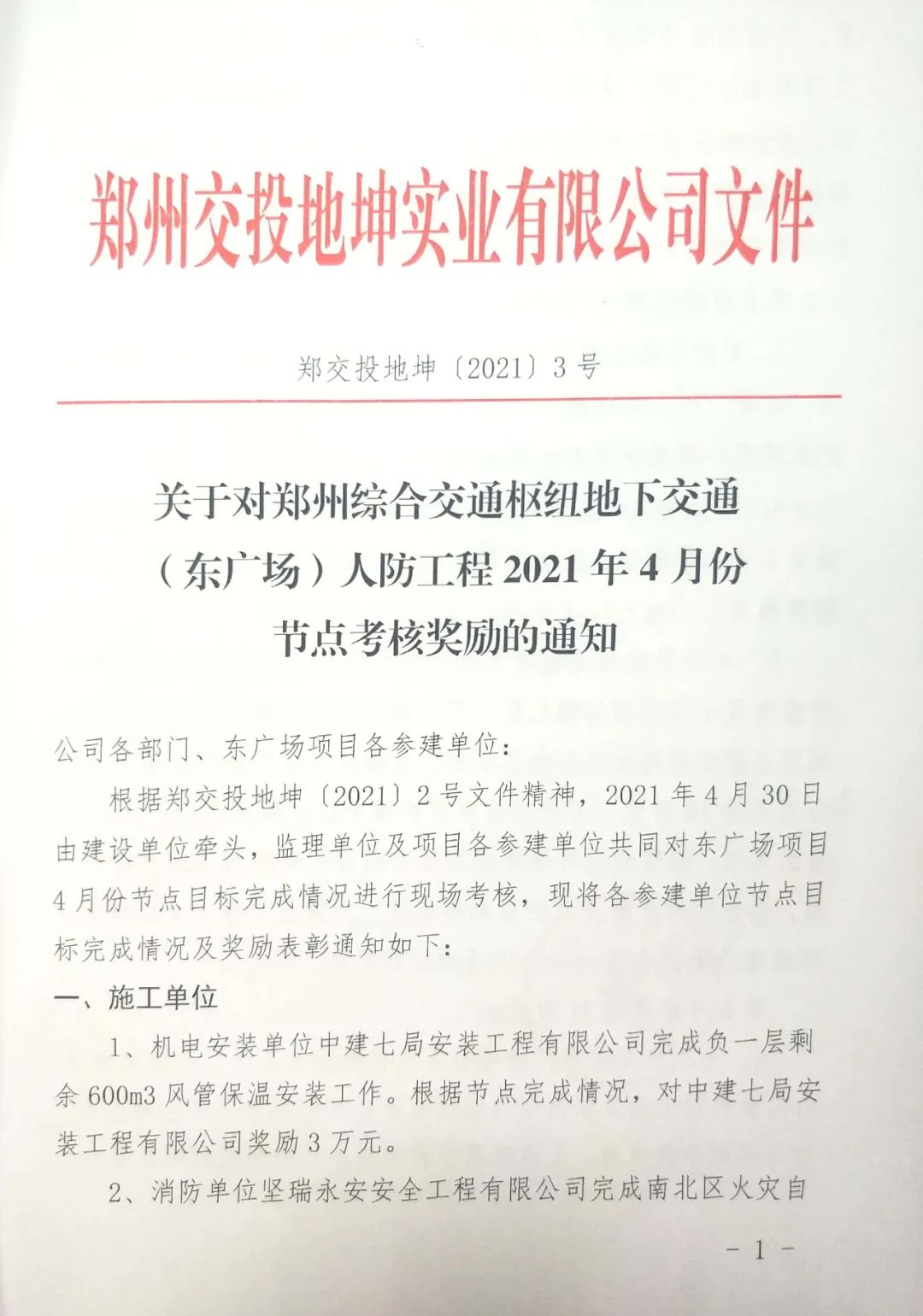 2021年5月28日,創(chuàng)達咨詢受到鄭州交投地坤實業(yè)有限公司的通報表揚,并給予3萬元獎勵。我司項目部積極推進各參建單位按照節(jié)點目標要求加快項目施工,認真執(zhí)行相關施工驗收規(guī)范標準,及時發(fā)現(xiàn)現(xiàn)場存在的問題并督促有效整改,確保了工程質量和施工安全。